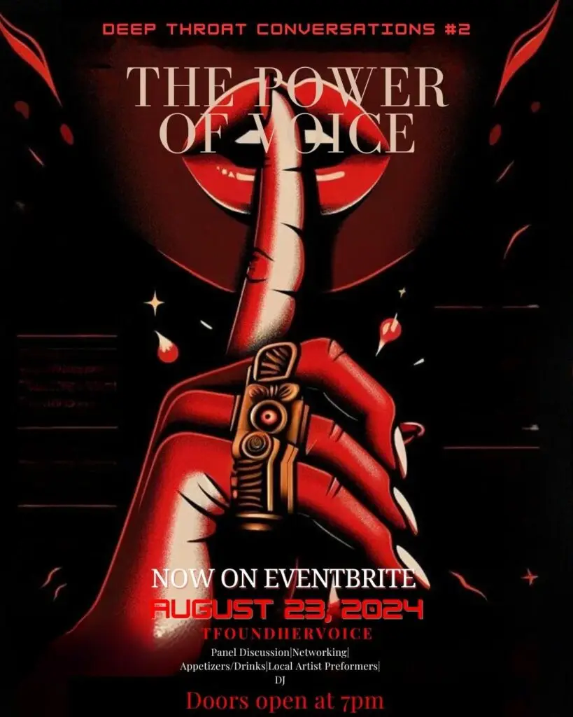 Ready for a transformative evening? Join us for “The Power of Voice: Deep Throat Conversations,” proudly presented by TFoundHerVoice.